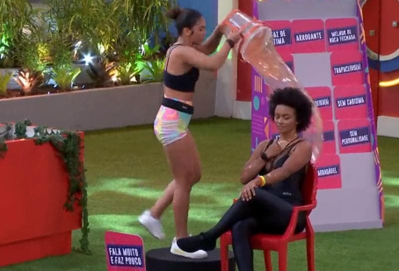 Durante o Jogo da Discórdia realizado nesta segunda-feira (14) no BBB22, Maria flertou com a expulsão do reality show. Na dinâmica, a participante bateu com o balde na cabeça de Natália.
