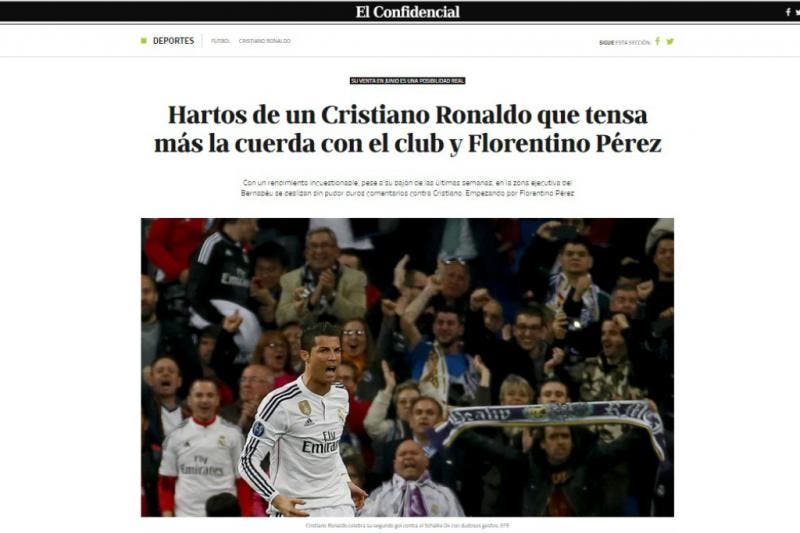 Mesmo mantendo a boa fase com gols e batendo vários recordes, Cristiano Ronaldo não vem correspondendo fora de campo para a diretoria do Real Madrid. De acordo com o jornal El Confidencial, o presidente Florentino Pérez estaria cogitando negociar o jogador. Além de insatisfeita com o atleta, a diretoria do clube também não tem tido boas relações com o empresário de CR7.