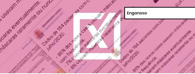 É enganoso o tuíte que insinua que o uso de máscara é ineficaz contra o novo coronavírus com base em dados de 154 pacientes que testaram positivo para o novo coronavírus nos Estados Unidos coletados no mês de julho deste ano. O tuíte compartilha parte de uma tabela publicada em um artigo do Centro de Controle e Prevenção de Doenças (CDC) dos Estados Unidos e destaca os dados sobre o uso de máscara: 85% dos novos casos eram pacientes que usavam a máscara sempre ou com frequência nos 14 dias que antecederam o início da doença, 7% usavam eventualmente e 8% usavam raramente ou nunca.