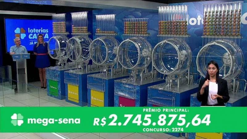 A Caixa Econômica Federal organizou neste sábado, dia 27, o concurso 2.274 da Mega-Sena, em São Paulo. O prêmio principal é de R$ 2,7 milhões.