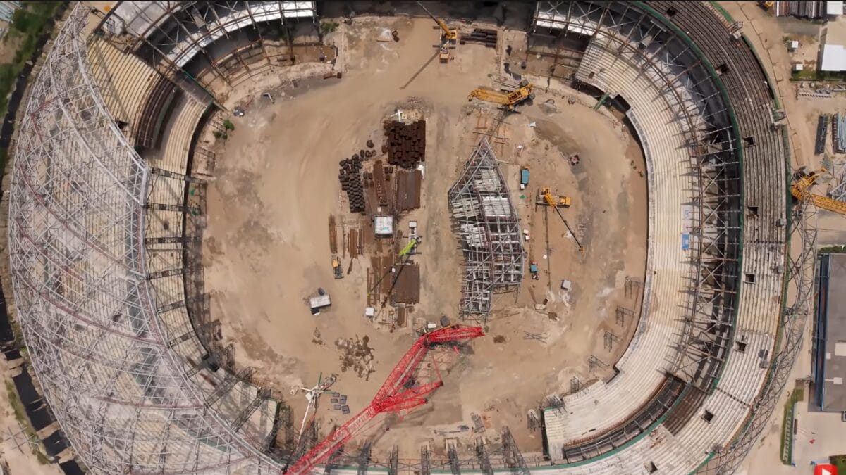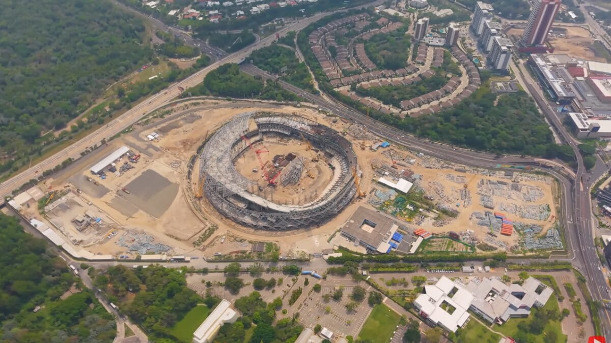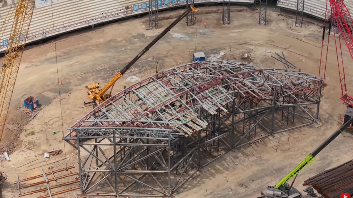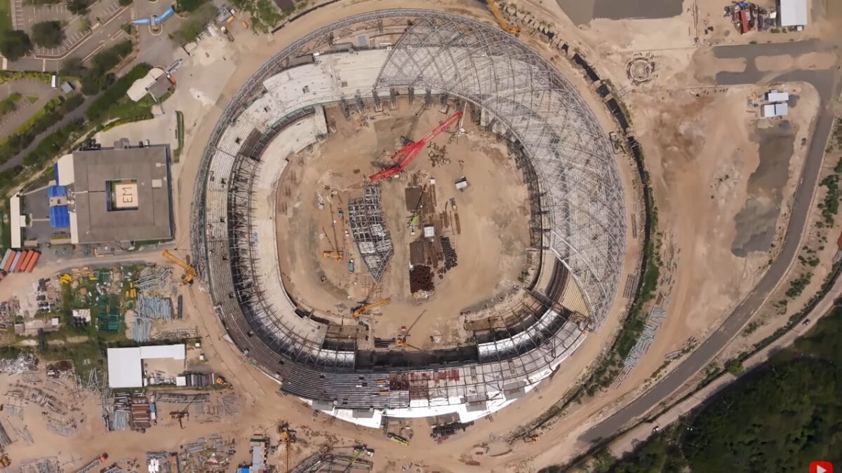 Por meio das imagens aéreas é possível observar o progresso da colocação das arquibancadas, o desenvolvimento do anel perimetral, a instalação da cobertura exterior e um dos processos mais complexos das obras: a montagem e instalação da cobertura.