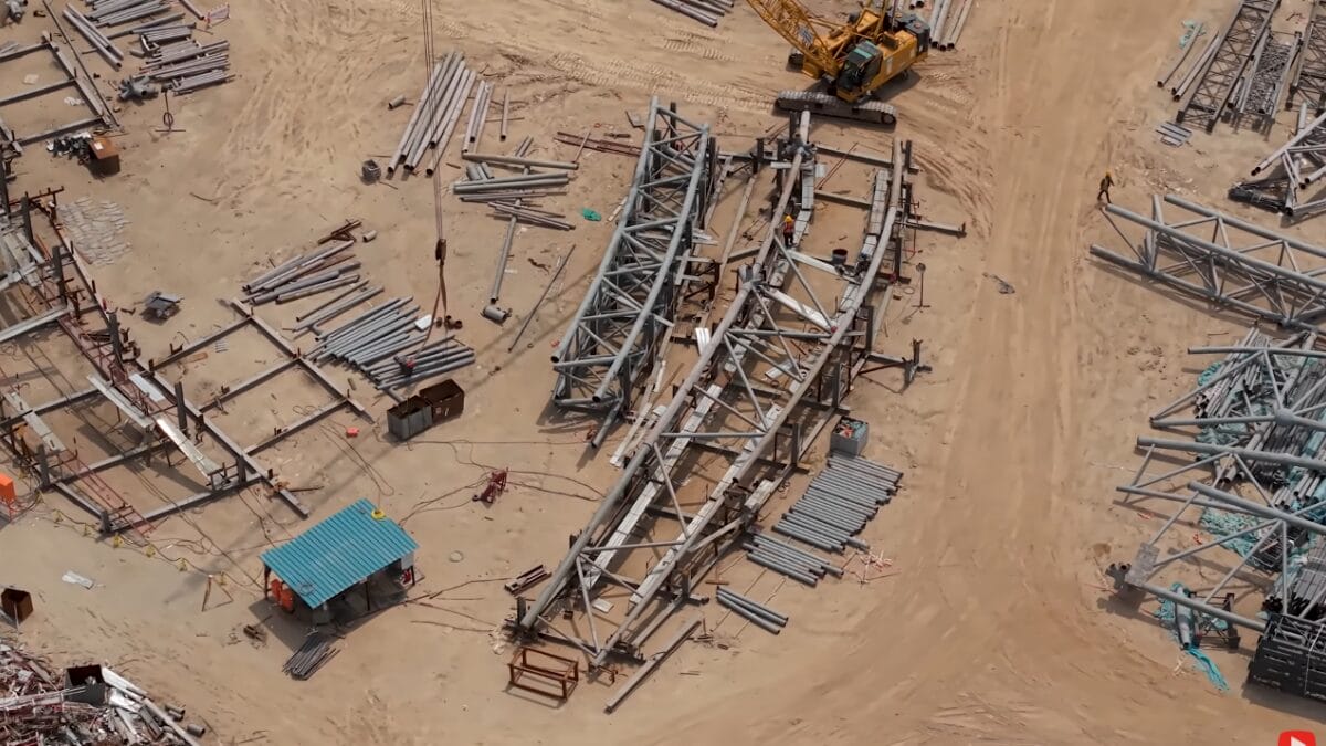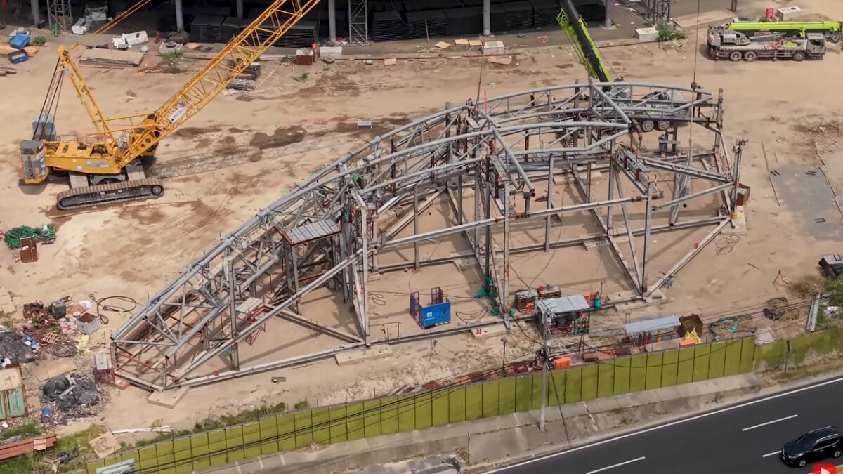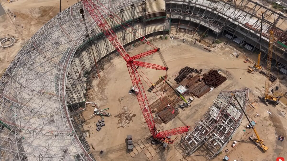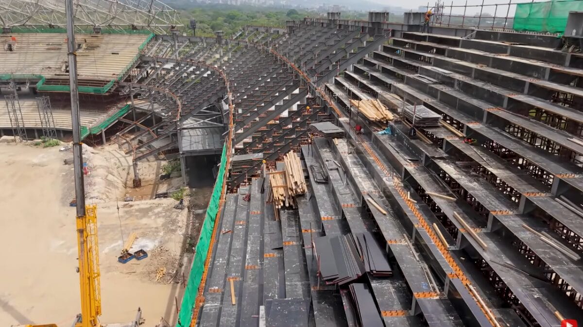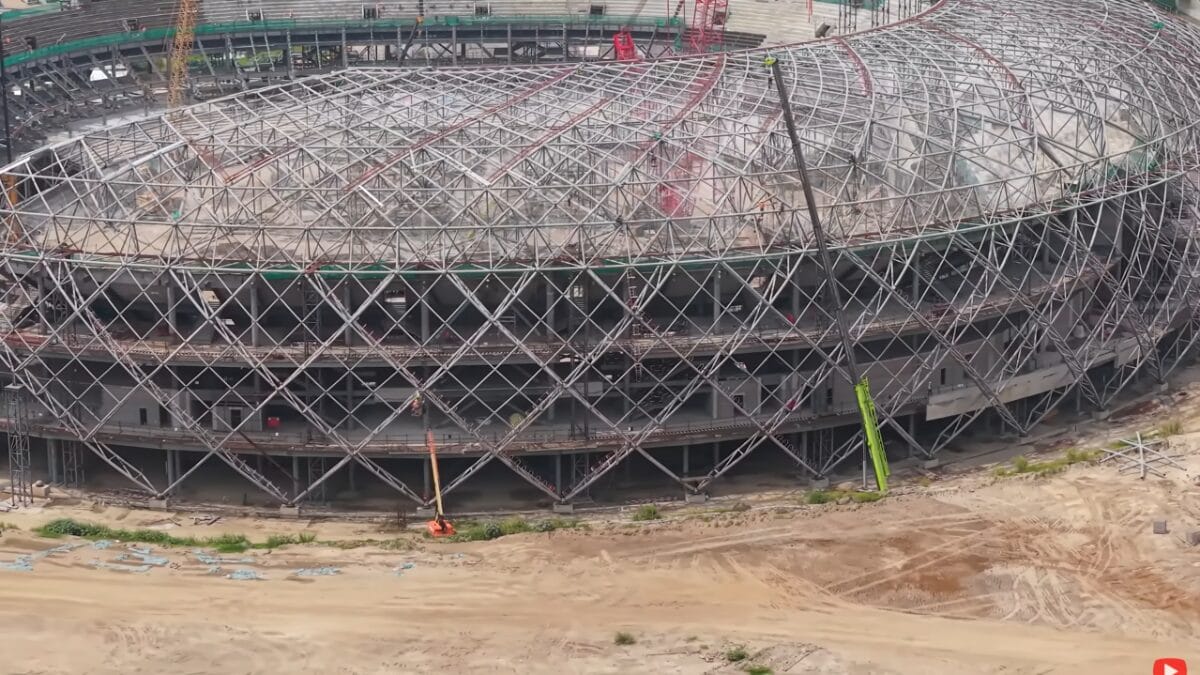 Por meio das imagens aéreas é possível observar o progresso da colocação das arquibancadas, o desenvolvimento do anel perimetral, a instalação da cobertura exterior e um dos processos mais complexos das obras: a montagem e instalação da cobertura.