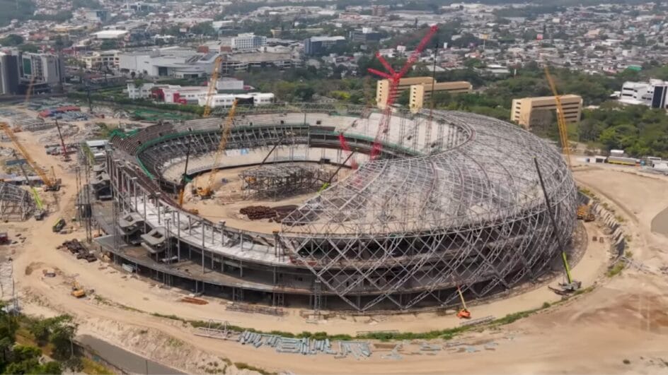 O Estádio Nacional de El Salvador, megaestádio que está sendo construído na América Latina pela China, entrou na fase mais complexa das obras recentemente. O projeto está orçado em um total de 500 milhões de dólares (R$ 2,5 bilhões).