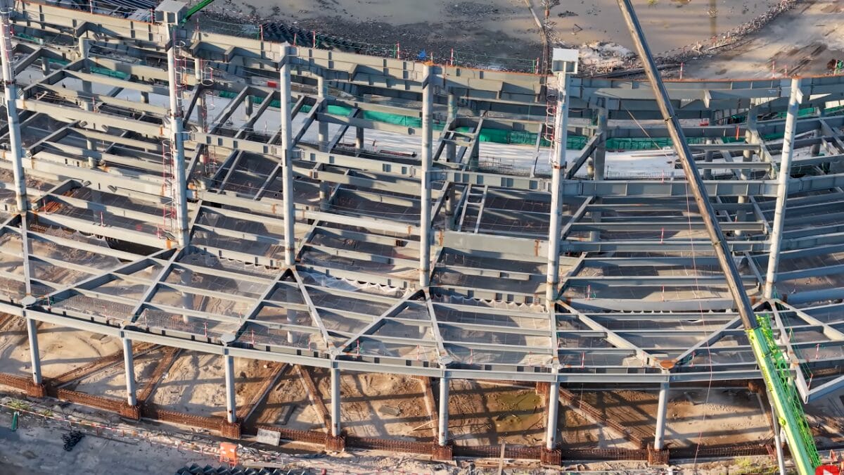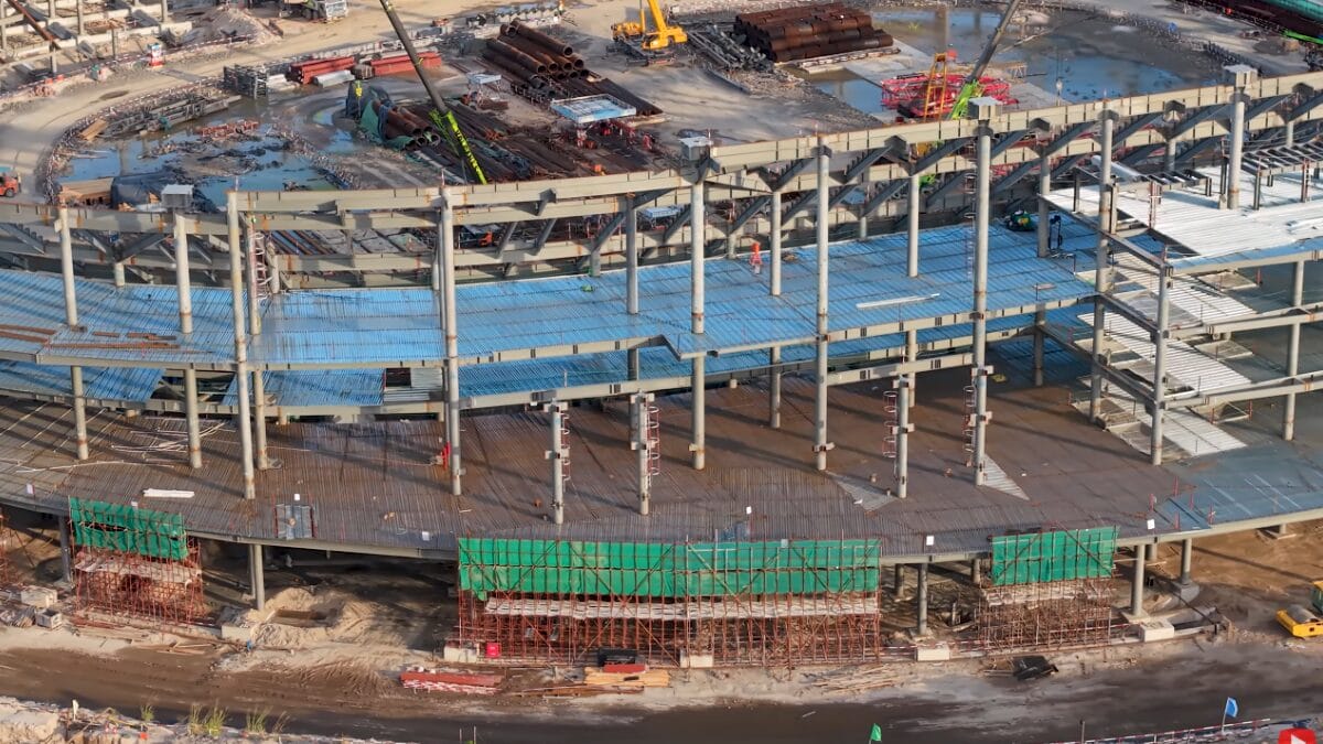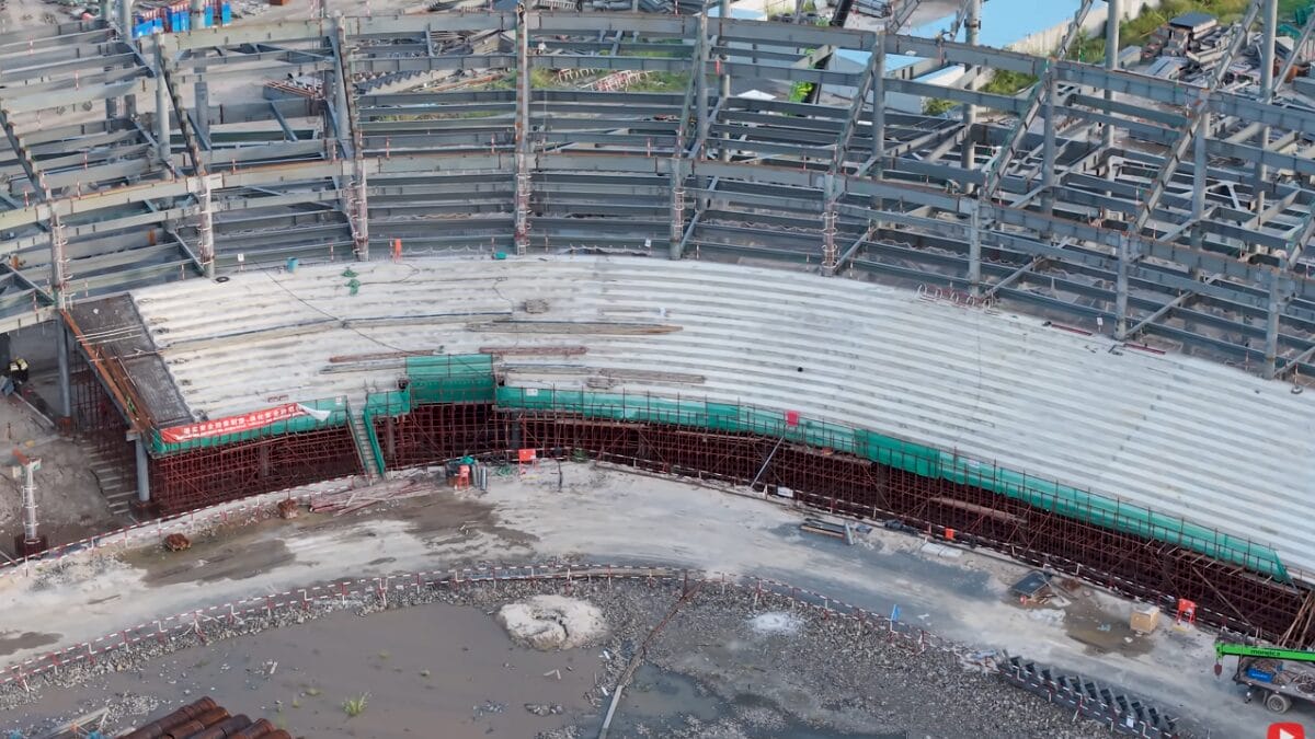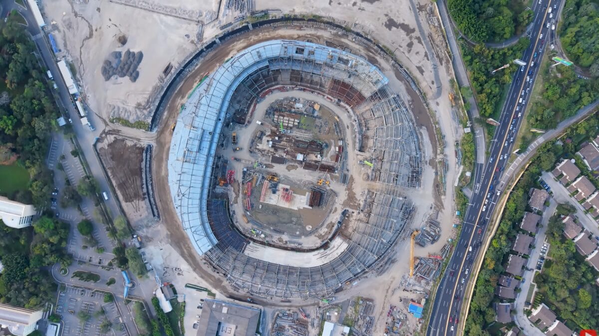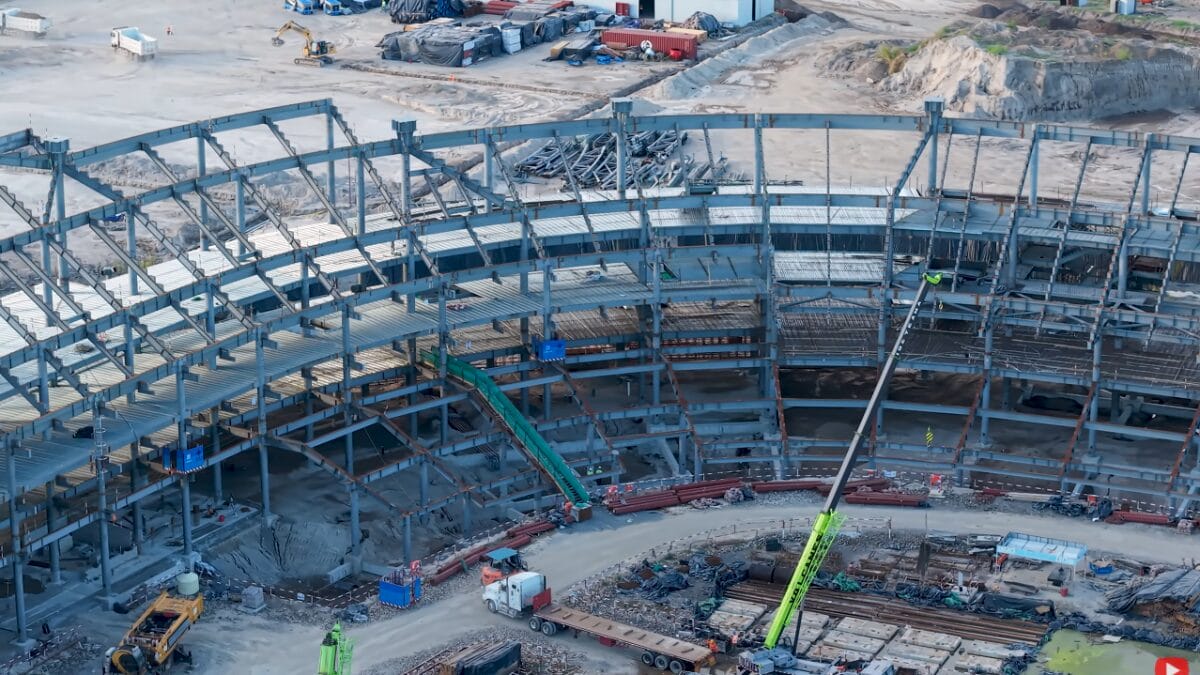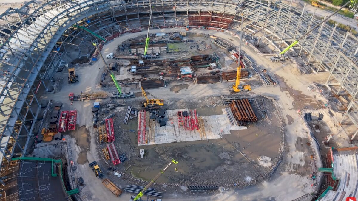 Nos últimos dias, a obra entrou em uma das etapas mais decisivas. Com o fechamento completo do anel estrutural que sustentará as arquibancadas superiores, a prioridade de construção passará a ser do interior do recinto.