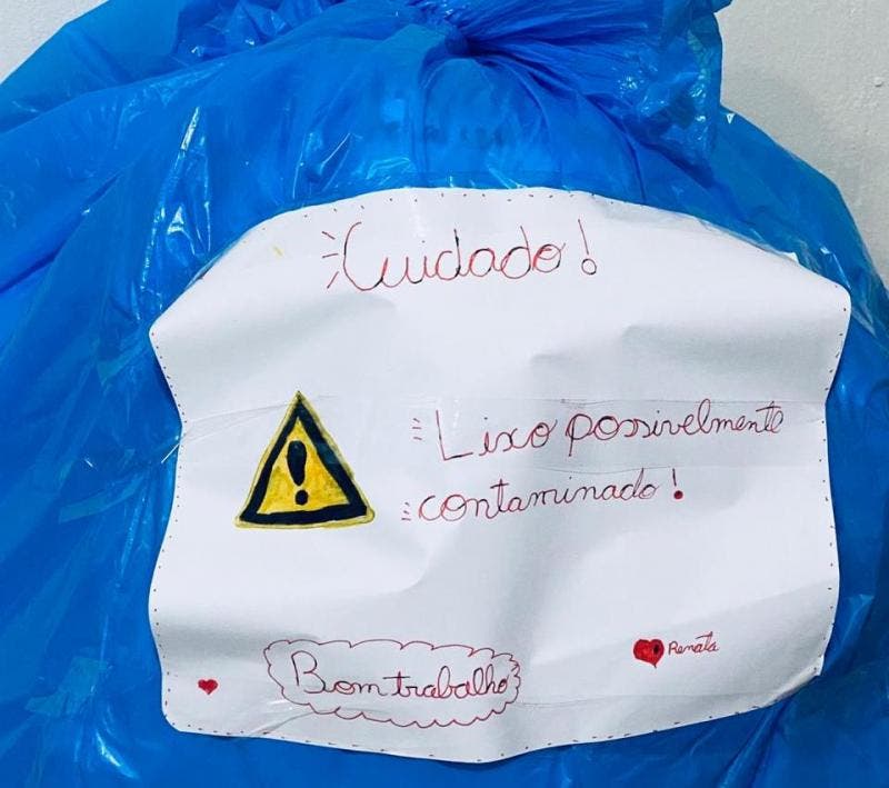 Uma menina de 10 anos com suspeita de covid-19 colocou um recado no saco de lixo para alertar garis e profissionais da coleta sobre o possível risco de contaminação. O gesto ocorreu no sábado. A foto da mensagem circulou nas redes sociais no fim de semana como uma forma de cuidado com o próximo em meio à pandemia do novo coronavírus.