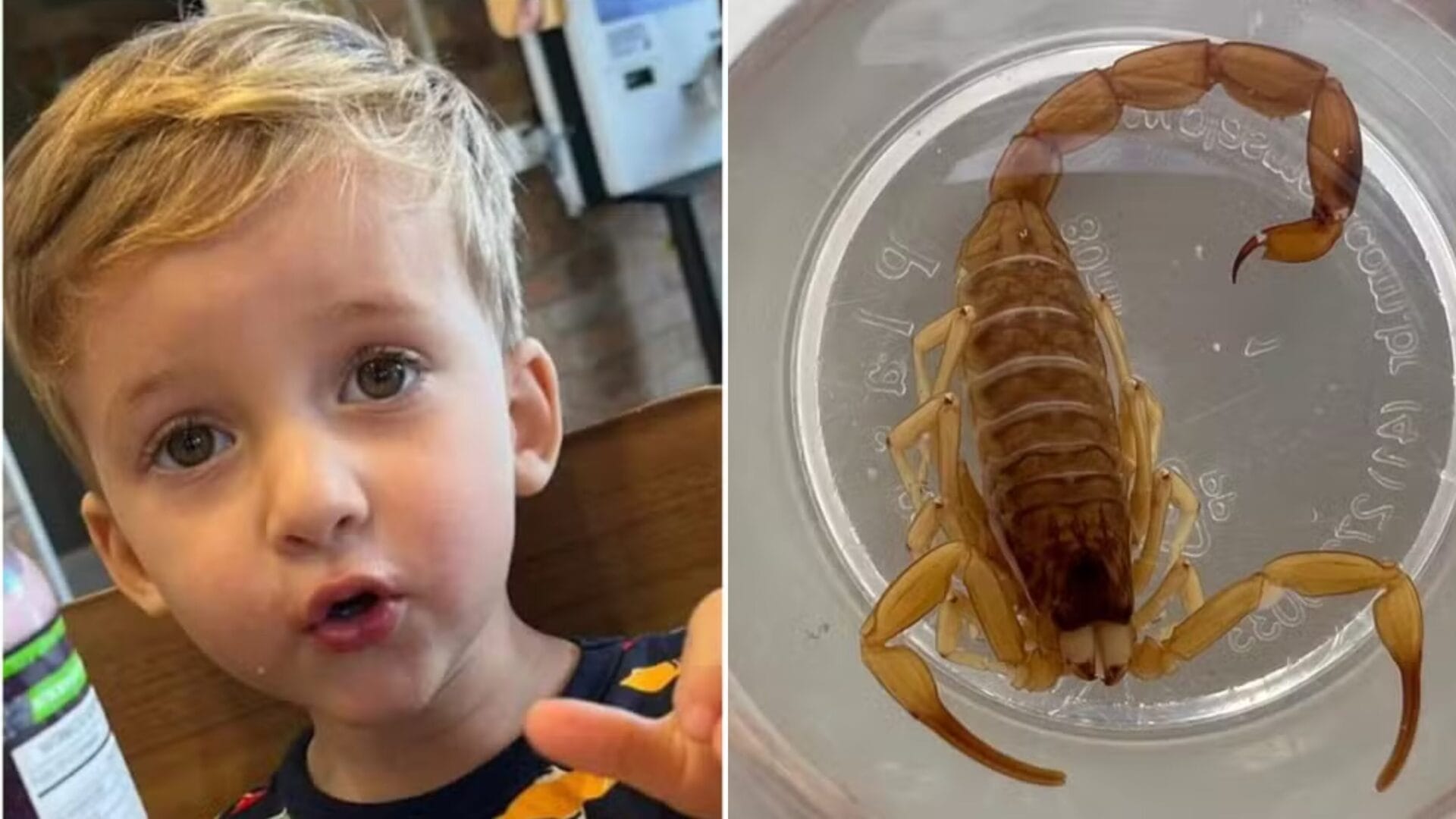 Durante a triagem, o pai relata que o atendente recolheu o escorpião para mostrar à equipe médica, enquanto a criança permaneceu por um tempo na sala de espera chorando e reclamando de muita dor.
