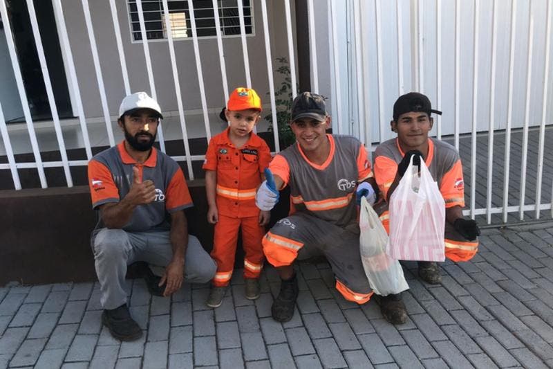 No último domingo (30), o carinho de Caetano com os garis da cidade foi reconhecido. Uma representante da empresa responsável pela limpeza urbana em Chapecó presenteou o menino com a miniatura de um caminhão de lixo.