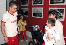 O jovem recebeu o carinho dos atletas colorados, que pararam para tirar fotos e autografar a bandeira. Guilherme, que sofreu paralisia cerebral, quase explodiu de felicidade quando D’Alessandro apareceu. Em uma bela atitude, o argentino foi ao vestiário e voltou com uma camiseta oficial de presente. Número 10, é claro.