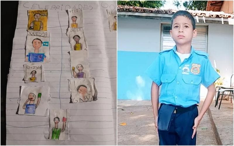 Um garoto de oito anos usou papel, tesoura, lápis de cor e muita criatidade para realizar o sonho de ter um álbum da Copa do Mundo de 2022. O pai do pequeno João Gabriel, o feirante João Teixeira, disse que a família não tem condições para comprar o produto e se surpreendeu com a criação do filho. O caso aconteceu em Goiânia, e as informações são do g1 GO.
