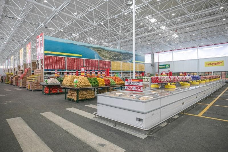 O Fort Temporário Campeche conta com um mix de produtos de 4 mil itens, número reduzido se comparado à operação completa, porém com um sortimento inteligente, considerando tudo que os clientes mais costumam comprar nas principais categorias.