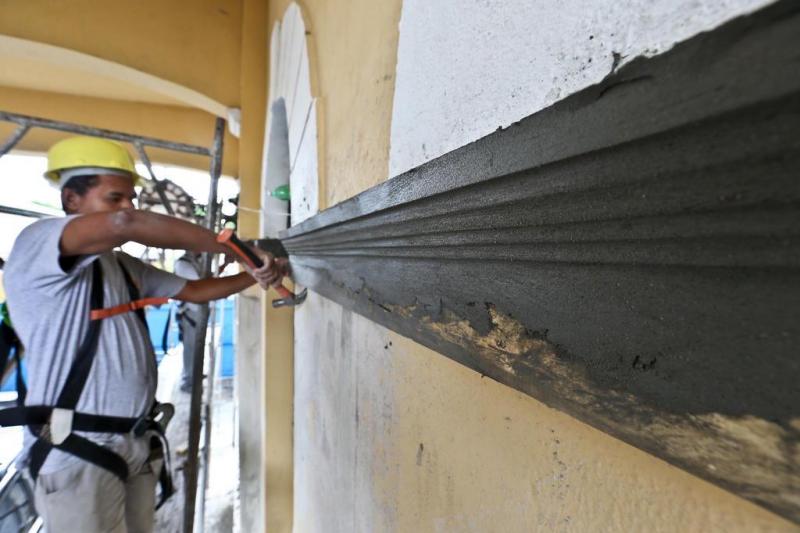 Com madeira angelim, bem mais espessa que a das antigas, as 63 novas portas externas do prédio serão como as originais, fechando até em cima, detalhe arquitetônico percebido por poucos que costumam passar por ali. As cimalhas, desenhos feitos nas paredes entre as portas, são outros elementos recuperados manualmente. Com uma forma de metal, elas ganham o formato, antes desgastado pelo tempo. Além disso, pequenas rachaduras estão sendo remendadas.