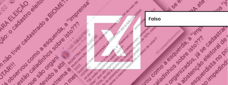 É falsa a afirmação de que será exigido cadastro de biometria para votar nas eleições gerais de 2022. Publicações com variações dessa mesma mensagem têm sido divulgadas por perfis pró-Bolsonaro no Twitter, no Facebook e também por WhatsApp, sugerindo a existência de um “complô” do TSE com a mídia tradicional para ocultar essa informação dos apoiadores do atual presidente, impedindo que votem por sua reeleição.