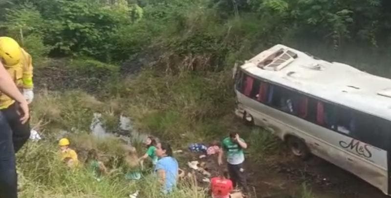 Em um vídeo gravado pelos policiais, é possível ver o ônibus danificado na parte debaixo do barranco, além de vítimas e a movimentação das forças de segurança.