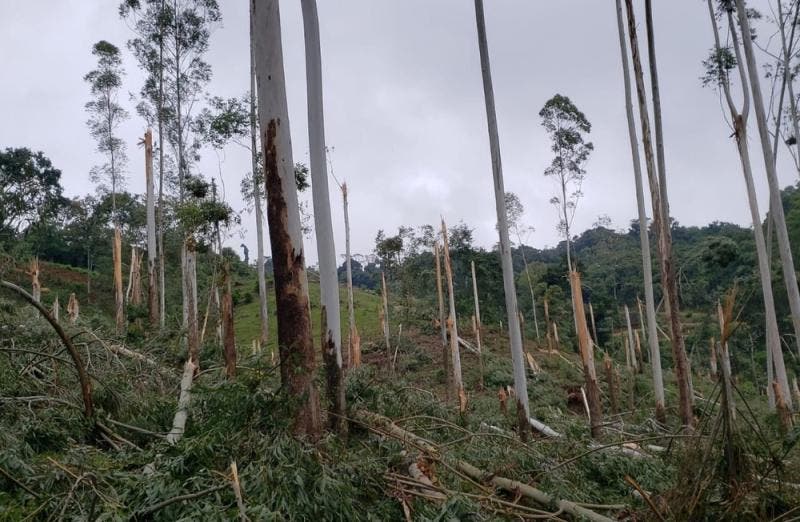 Uma microexplosão no Oeste de Santa Catarina foi a responsável pela destruição de uma plantação de eucaliptos em Quilombo, na segunda-feira (28), de acordo com análise feita pela Defesa Civil do Estado. Os estragos causados pelo vento, apesar de pontuais, foram acompanhados de chuva e granizo.