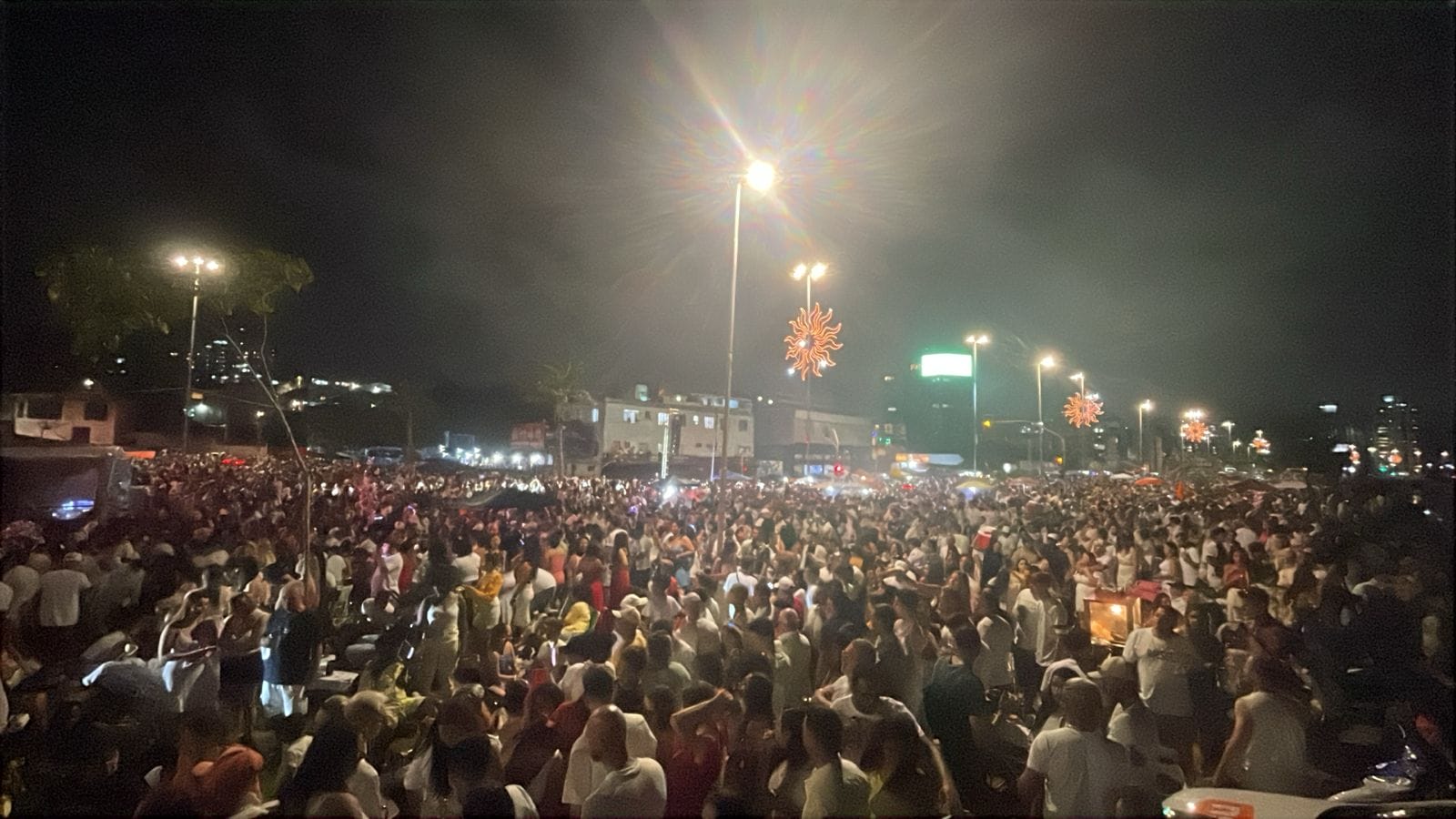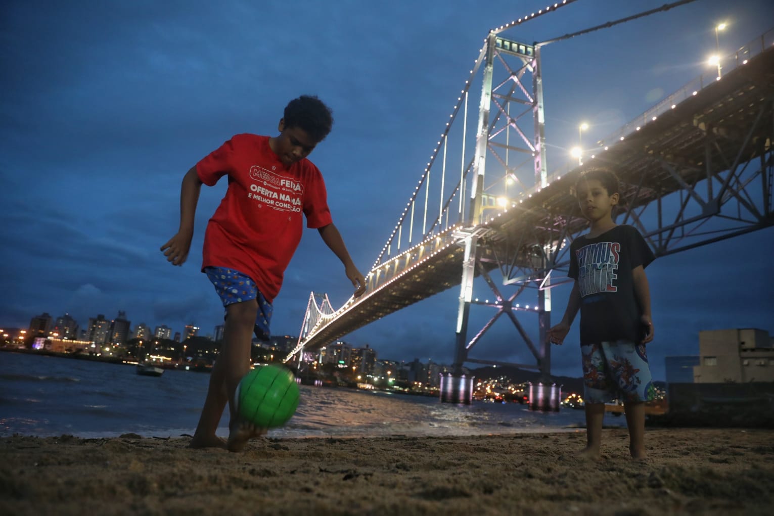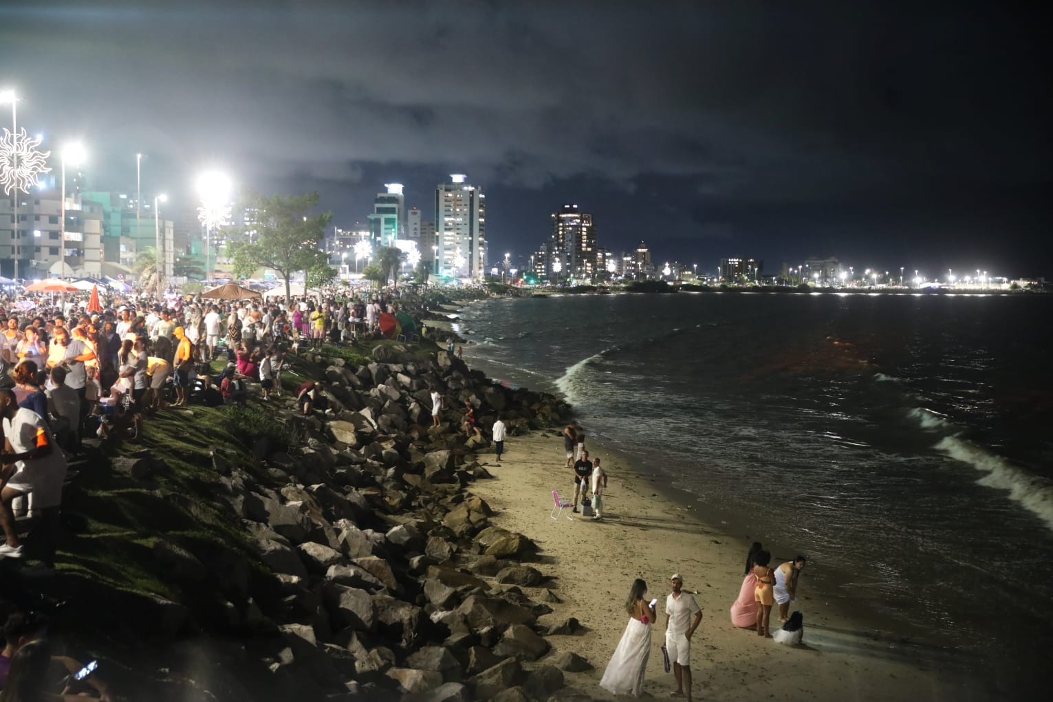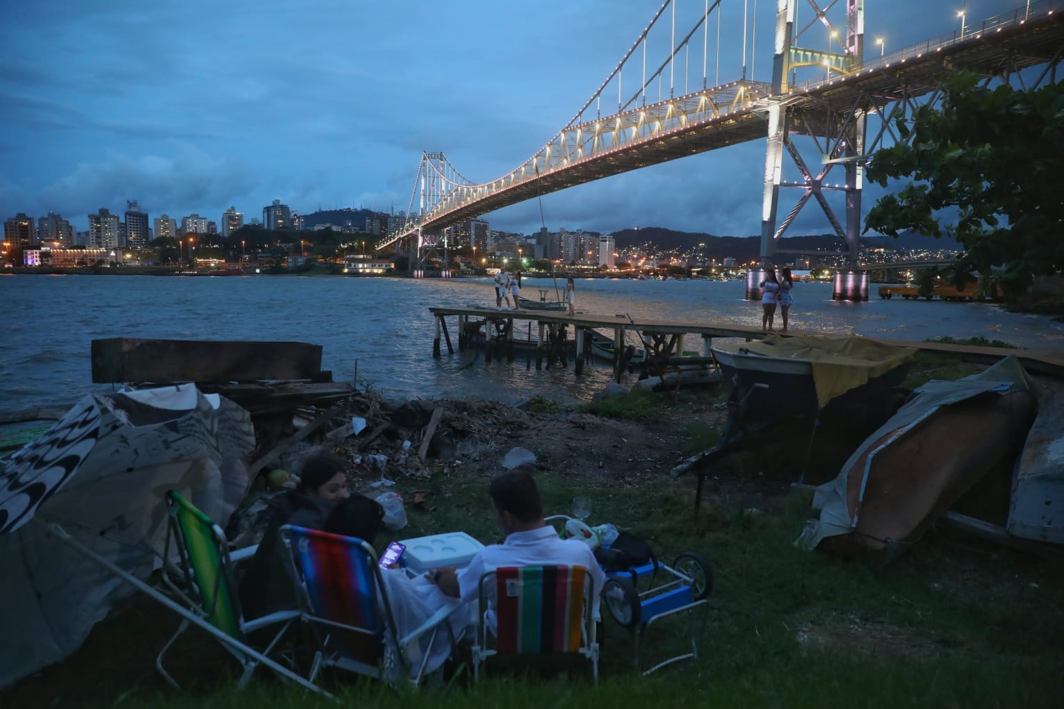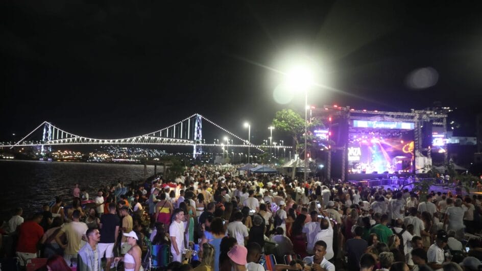 Quem pretende entrar em 2025 enquanto admira o show de fogos de artifício na Beira-Mar Norte, em Florianópolis, garantiu o seu lugar cedo. Por volta das 21h, uma multidão já aguardava a chegada do Réveillon ao longo da avenida, e também na Beira-Mar Continental, que terá vista privilegiada para a cascata na Ponte Hercílio Luz.