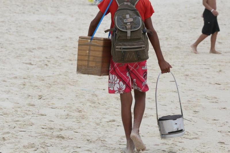 Segundo a listagem, crianças e adolescentes que trabalham como ambulantes, vendendo bebidas alcoólicas e fantasias estão sujeitas a queimaduras por exposição a substâncias tóxicas e doenças da coluna.