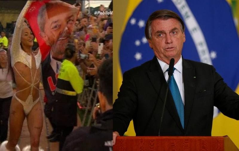 Durante sua apresentação, Pabllo Vittar fez um gesto com os dedos polegar e indicador, formando a letra L, em apoio ao ex-presidente Lula (PT). Depois, desfilou em meio ao público com uma bandeira com o rosto do petista.