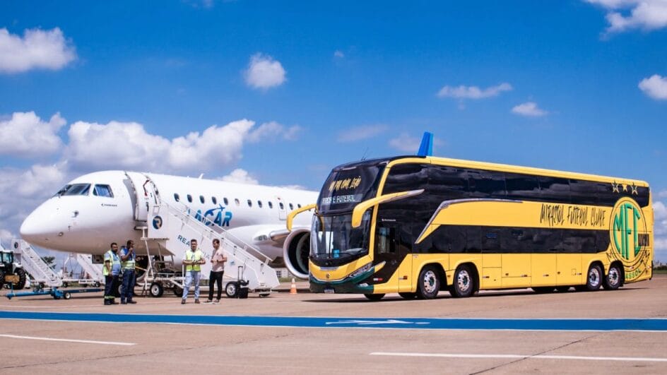 A equipe fretou o avião da Placar, que pertence à Leila Pereira, presidente do Palmeiras, com saída do Aeroporto Estadual Professor Eribelto Manoel Reino, em São José do Rio Preto-SP, internacionalizado temporariamente para atender as viagens do clube e dos adversários por causa da participação na competição sul-americana.