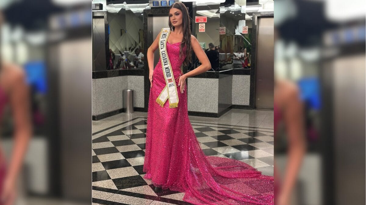 Camilly Ceccon, de 21 anos, é natural de Itajaí e representou Santa Catarina na competição Miss Brasil Mundo. A jovem foi coroada como Miss Santa Catarina Mundo em 2025, e avançou para a etapa nacional do concurso.
