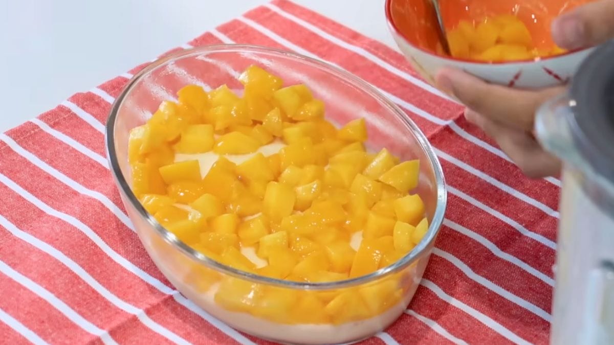 Essa sobremesa simples leva poucos ingredientes e fica deliciosa. A receita é uma opção para quem gosta de doces com pêssegos. Confira o passo a passo a seguir.