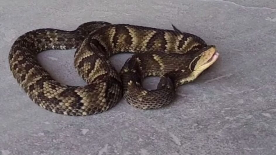O registro foi feito pelo biólogo Gilberto Ademar Duwe e compartilhado nas redes sociais, acompanhado de um alerta à população. Durante a primavera, as temperaturas se elevam e é mais comum encontrar animais como cobras e lagartos “passeando” em locais não comuns.