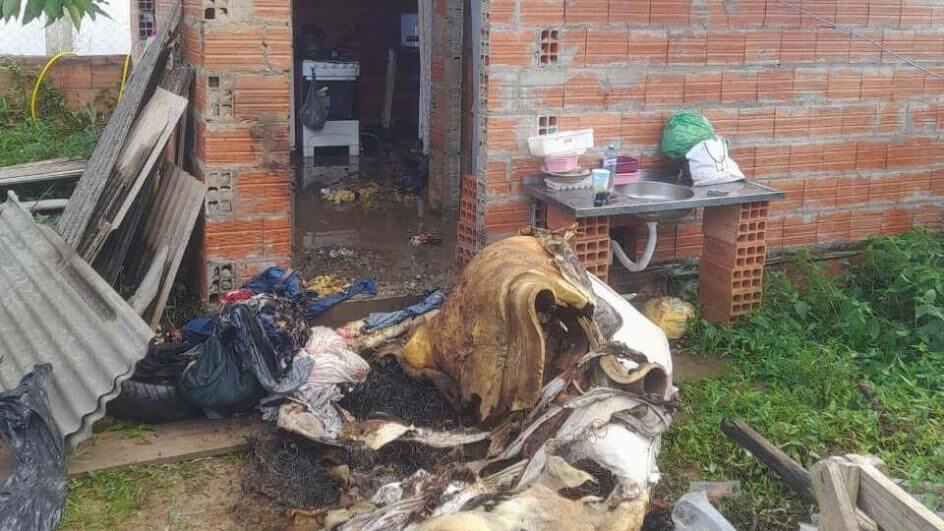Imagens mostram parte dos móveis da residência de 10 metros quadrados queimados e outros danificados por causa da água que precisou ser usada pelos bombeiros. A irmã do homem tentou apagar o fogo ao ver a situação e acabou inalando fumaça. Ela recebeu atendimento dos bombeiros.