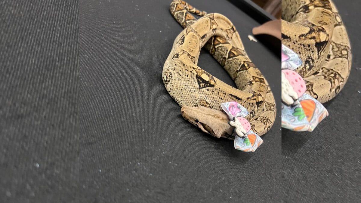 A jiboia recebeu o nome de Jiji, inspirado simplesmente na palavra “jiboia”. O animal foi adquirido em Sarandi, já com documentação regular, incluindo nota fiscal, Guia de Trânsito Animal (GTA) e termo de responsabilidade assinado pela tutora.