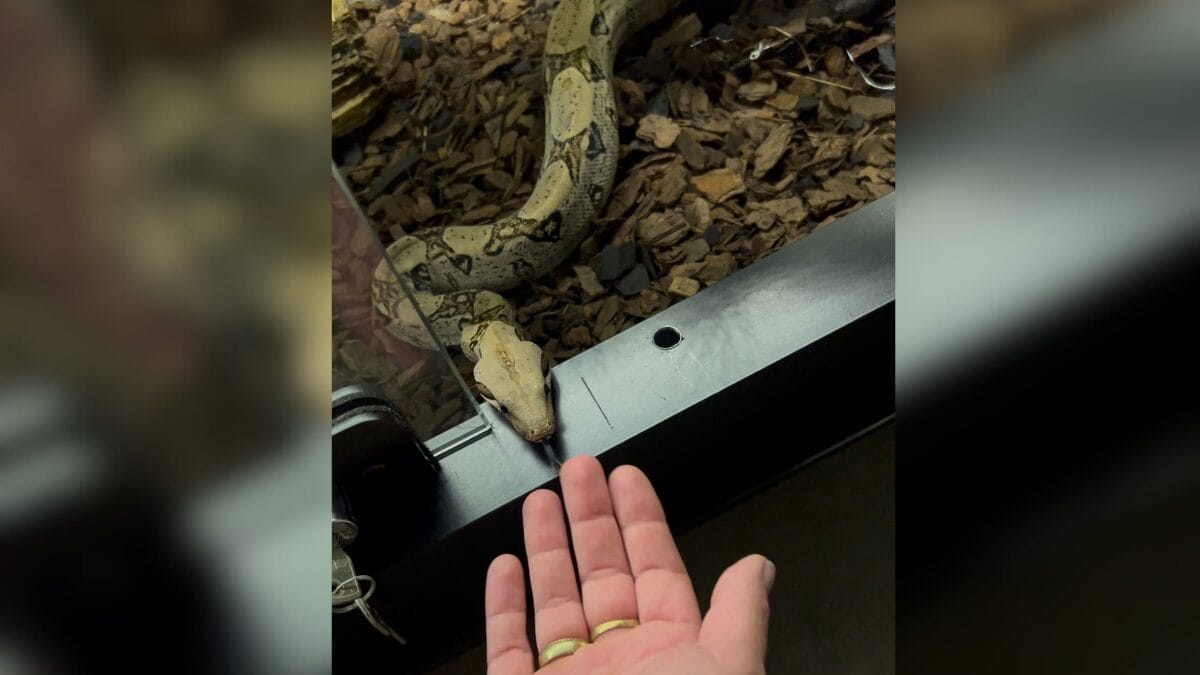 Mesmo sem outros pets, decisão tomada por causa da rotina corrida, ela afirma que o manejo da jiboia é mais simples do que muitos imaginam.
