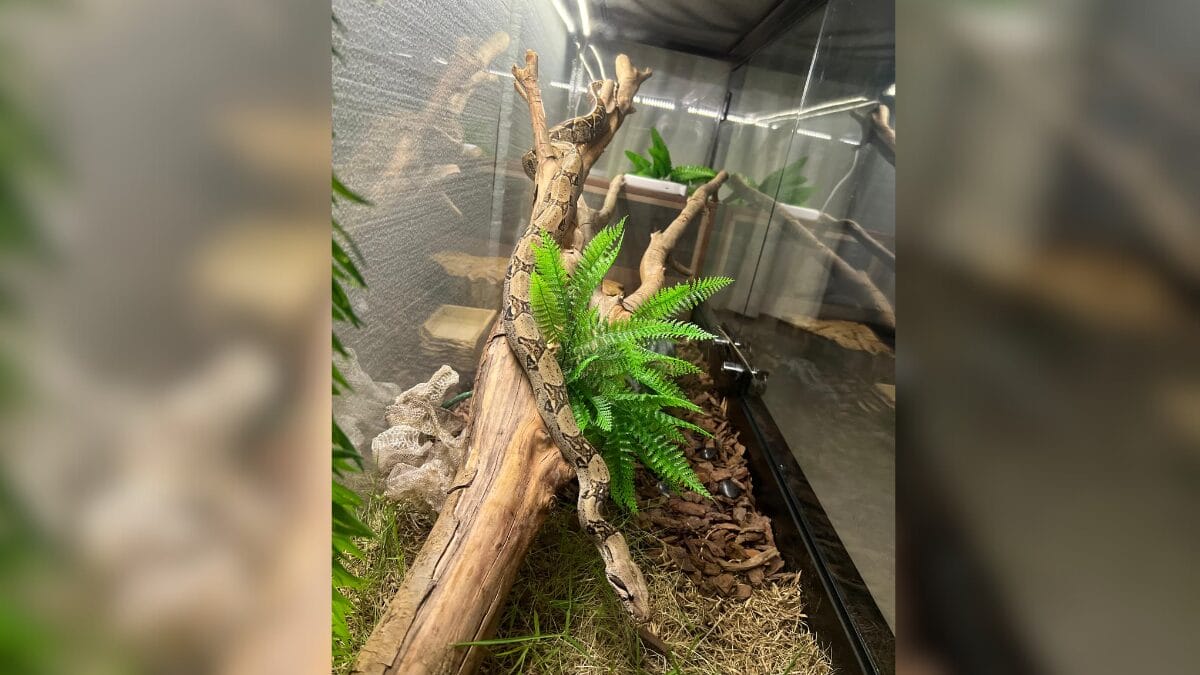 Para garantir qualidade de vida à jiboia, Michele preparou um terrário completo, planejado de acordo com as necessidades da espécie, que não é nativa da região fria do Oeste catarinense.