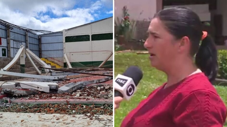 Uma moradora de Dionísio Cerqueira, no Oeste de Santa Catarina, perdeu parte da casa após um tornado atingir a região na última sexta-feira (7). Inês Terezinha Tenroler, que é agricultora, conta que precisou se agarrar a um poste para não ser levada pela força do vento.