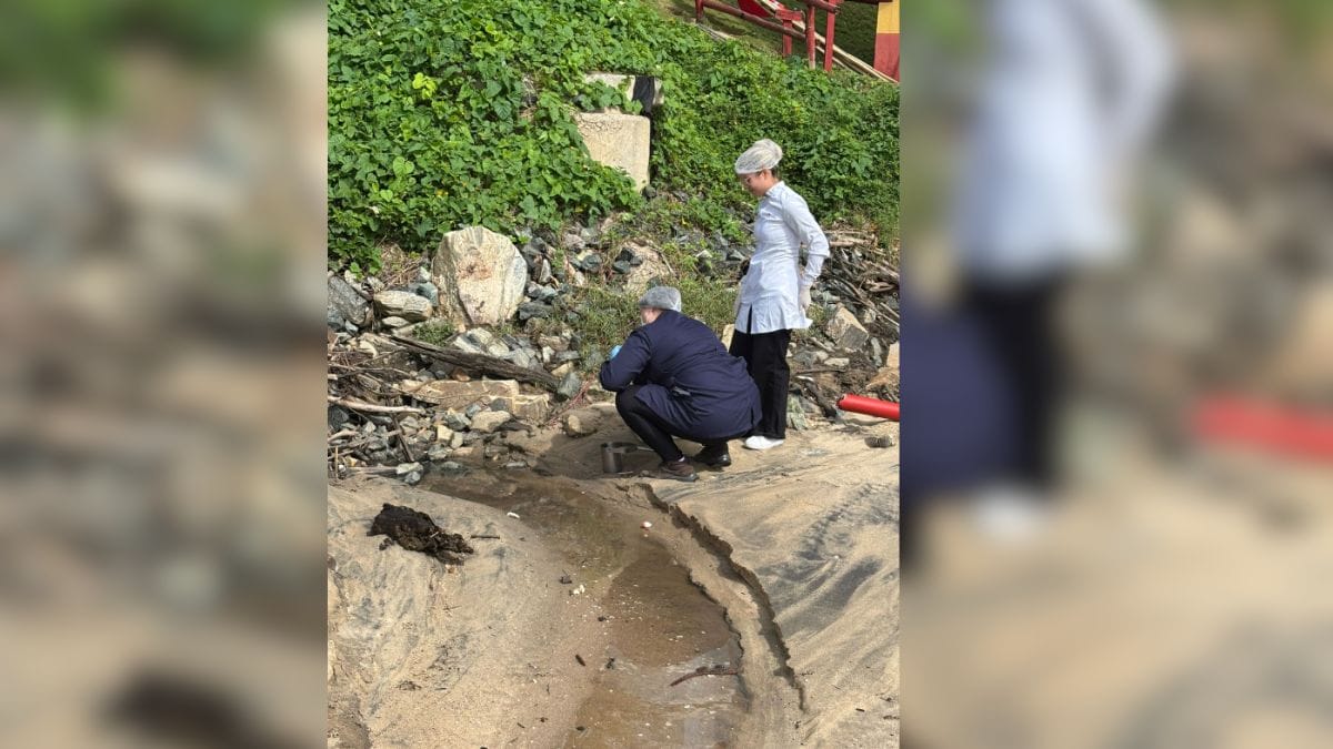 Imagens registradas no local no dia da coleta, próximo ao Posto de Guarda-Vidas nº 3, em frente à Rua Valdir Michereff, mostram que o líquido contaminado se acumulou na areia da praia e seguiu em direção ao mar.