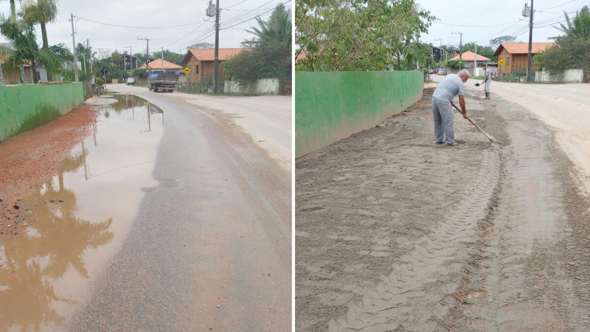 Nesta terça-feira (3), a Prefeitura de Tijucas realizou o reparo, e o prefeito Elói Mariano Rocha acompanhou pessoalmente a obra, que já foi concluída pela manhã. Veja como era a rua antes e como ficou depois do conserto: