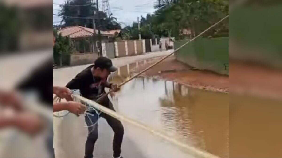 Uma manifestação inusitada e bem humorada de moradores do bairro Nova Descoberta, em Tijucas, na Grande Florianópolis, despertou a curiosidade esta semana: eles organizaram uma pescaria no buraco de rua alagado, com direito a vara de anzol e rede de pesca. O ato chamou atenção da Prefeitura Municipal, que já se pronunciou sobre o caso.