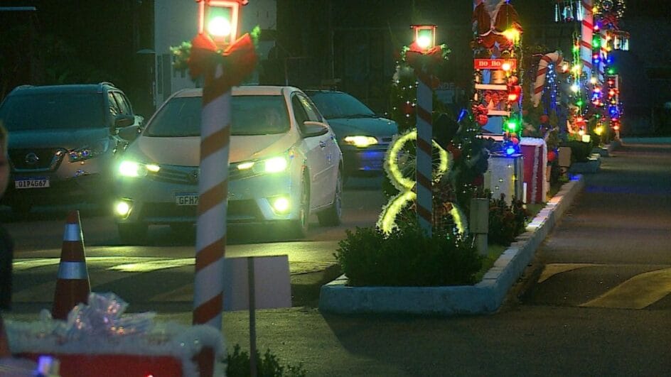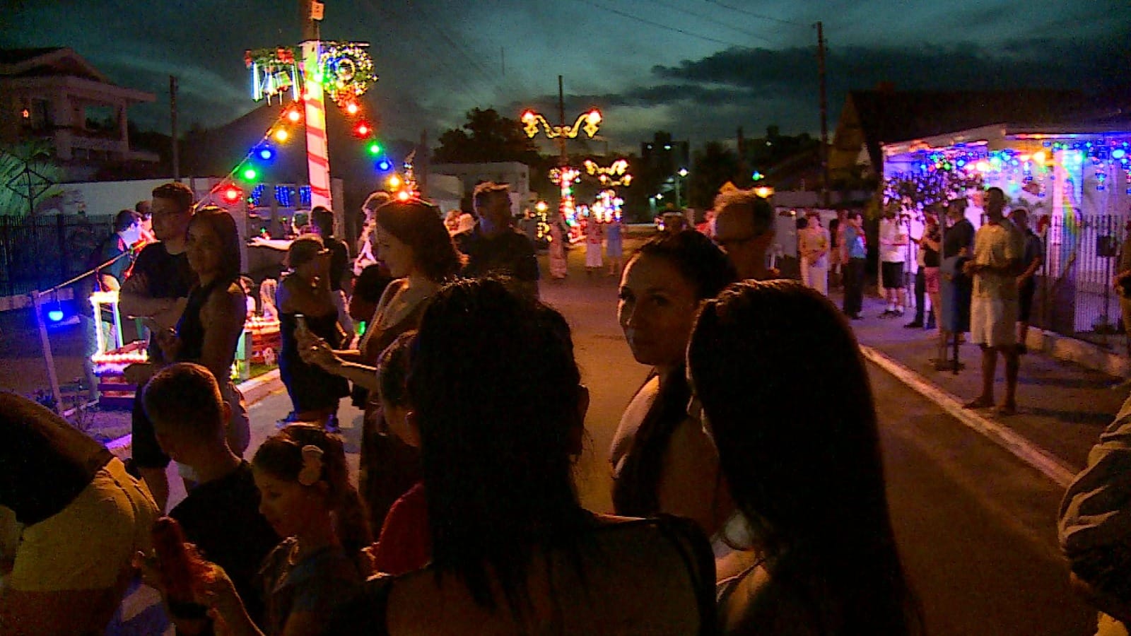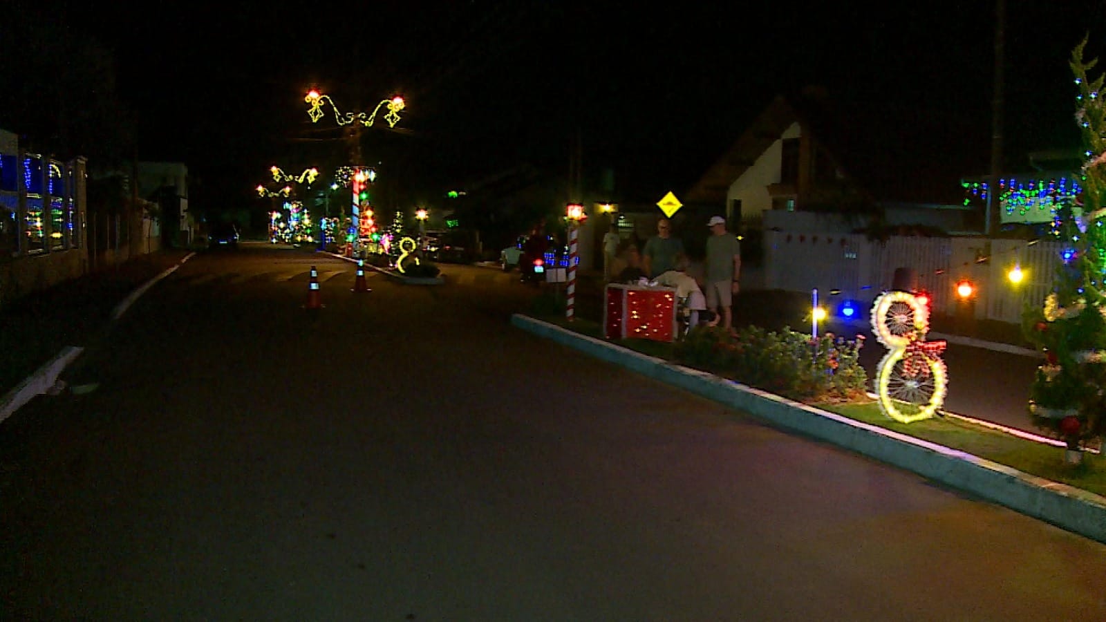 Quando a noite cai, a Rua Pará, em Indaial, no Vale do Itajaí, vira uma verdadeira atração de Natal. As luzes acesas dão um charme especial ao local e deixam a decoração ainda mais encantadora. Crianças e adultos aproveitam o clima natalino com música, alegria e a até a presença do Papai Noel. Tudo feito com carinho por quem mora na região.