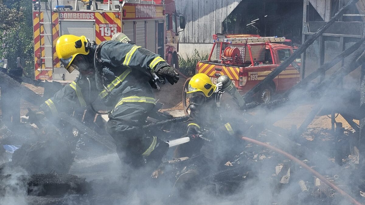 Quando a primeira guarnição chegou, moradores já tentavam controlar as chamas e evitar que destruíssem totalmente a estrutura de aproximadamente 200 metros quadrados. O galpão, porém, estava completamente tomado pelo fogo.