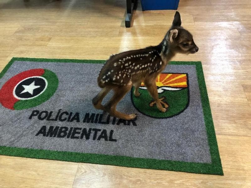 Morreu na segunda-feira (22) um filhote de veado que tinha sido resgatado pela Polícia Militar Ambiental (PMA) de Caçador, no Oeste de Santa Catarina. O animal tinha sido resgatado no sábado (19), depois que moradores acionaram os policiais, informando que tinham encontrado o bichinho sem a mãe.