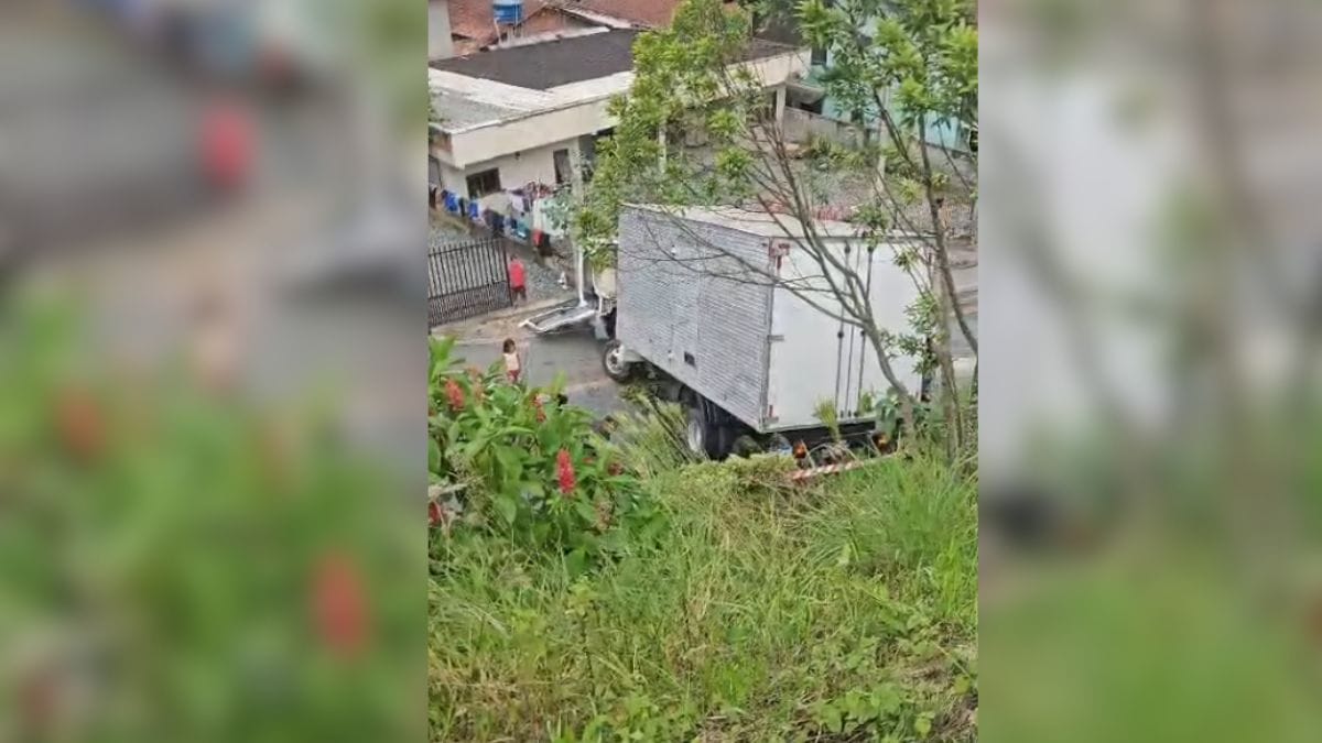 O caso aconteceu na Rua Florianópolis, no bairro Guanabara. Moradores da do local relataram à equipe da NSC TV que o caminhão desceu a Rua Damázio Matias de Oliveira e a cabine se desprendeu na curva do barranco, levando à queda na rua abaixo.