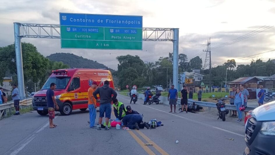 O acidente aconteceu por volta das 17h30, em Palhoça, no bairro Alto Aririú, próximo ao viaduto do Contorno Viário.