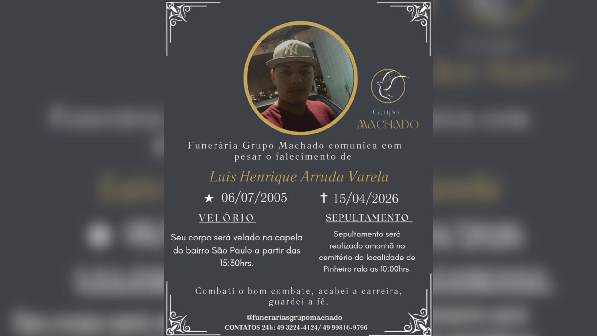 Nas redes sociais, amigos deixaram palavras de carinho para Luis Henrique. “Descanse em paz, maninho”, escreveu uma amiga. “Vá em paz, mano, sempre será lembrado”, disse outro. “Tão jovem”, lamentou uma.