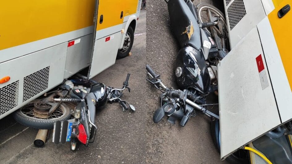 No local, os bombeiros encontraram o motociclista embaixo do veículo escolar, inconsciente e sem sinais vitais.