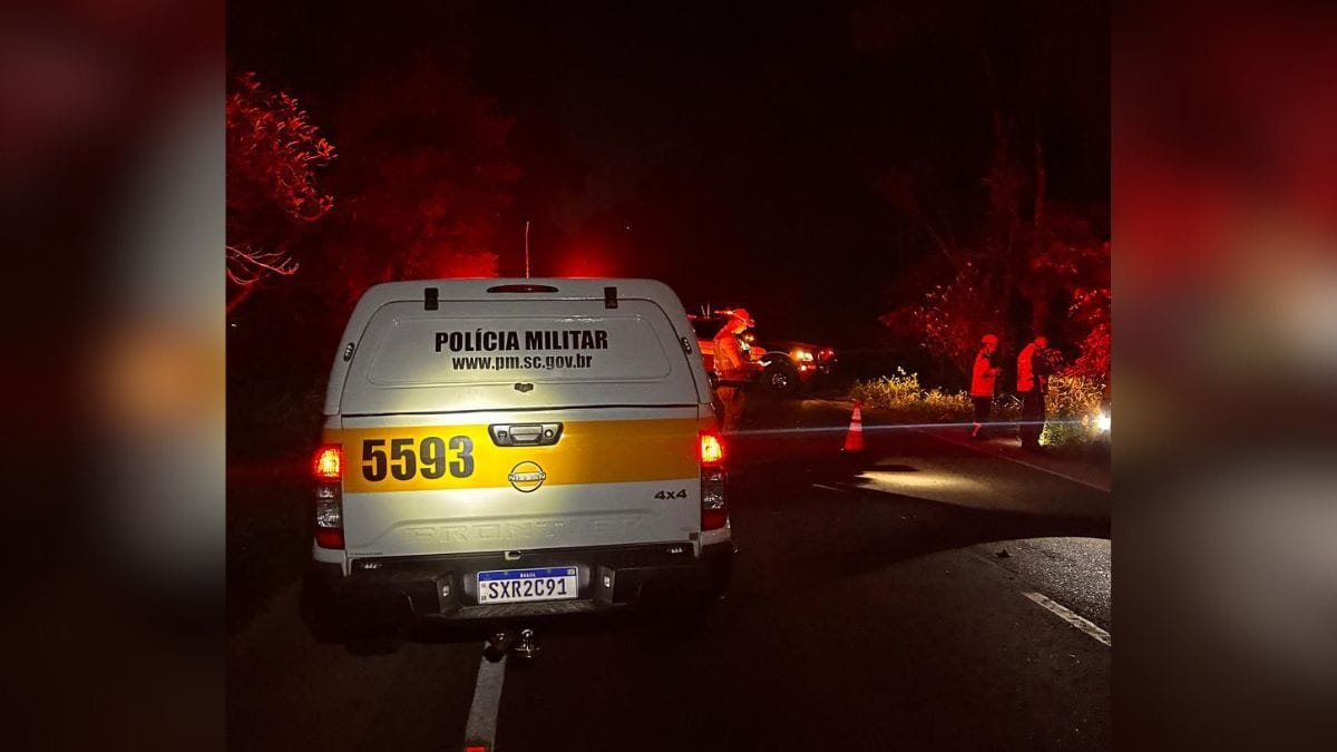 A colisão aconteceu em uma área rural da SC-417, na altura do Km 12.100, onde não existe iluminação pública, segundo a Polícia Militar Rodoviária (PMRv). Os motoristas dos carros, um Renault Sandero e uma Toyota Hilux, informaram à PMRv que a moto transitava sem os faróis ligados.