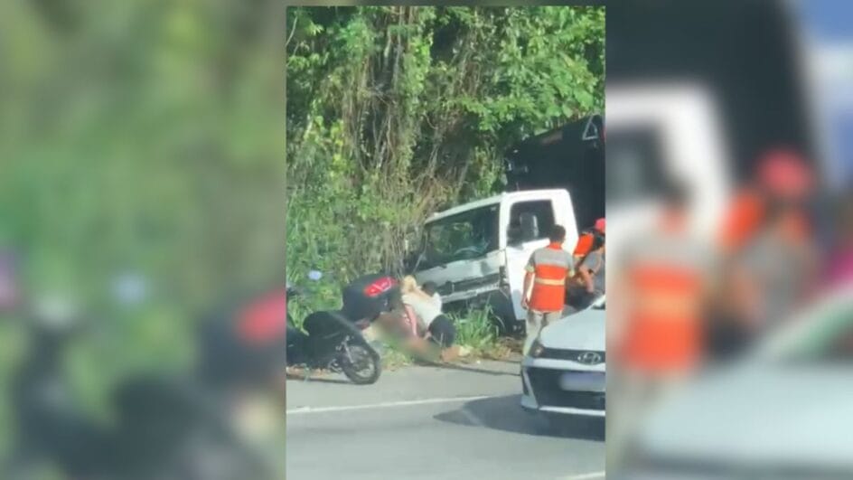 Imagens mostram que, antes da chegada dos socorristas, uma pessoa da área da saúde que passava pelo local e se deparou com o acidente, já havia iniciado as manobras de reanimação. A motocicleta que colidiu contra o caminhão ficou destruída.