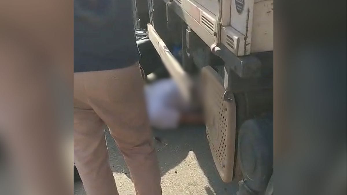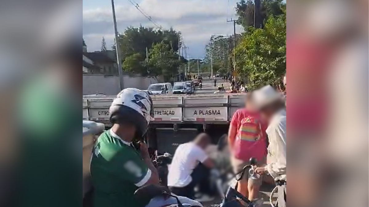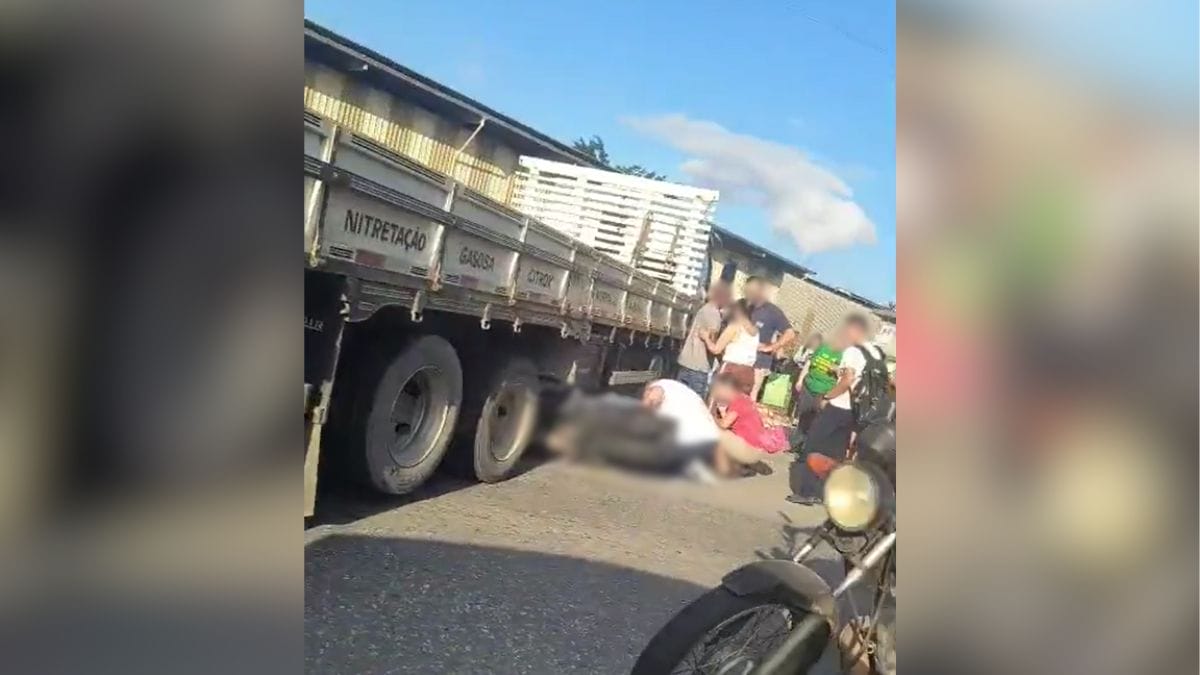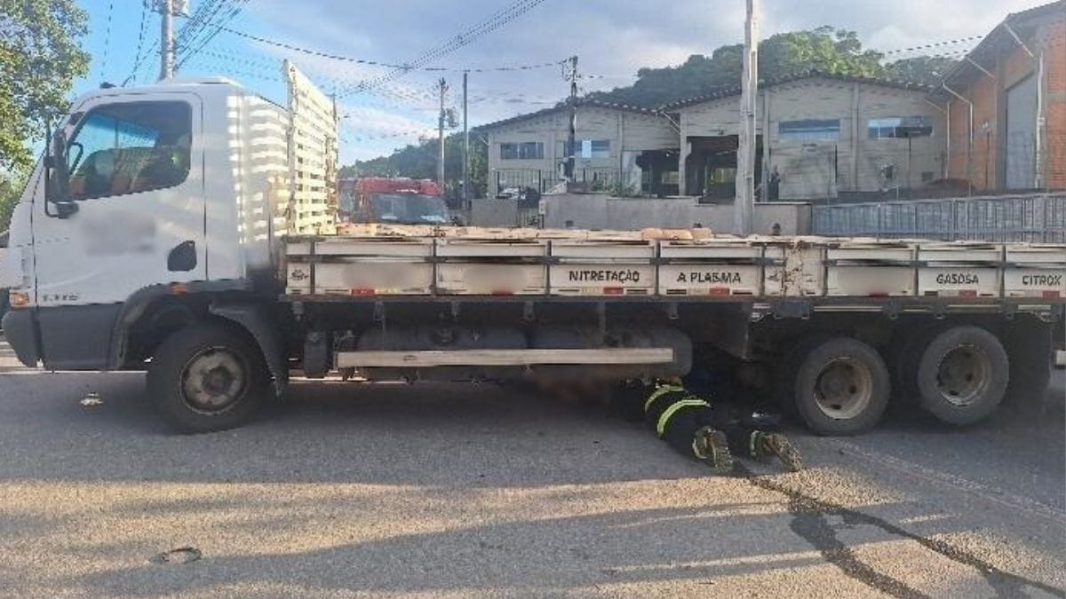 Ao iniciar a manobra, porém, o motorista percebeu que o motociclista não notou a presença do caminhão, seguiu pela via sem conseguir frear a tempo e acabou parando embaixo do veículo de grande porte.