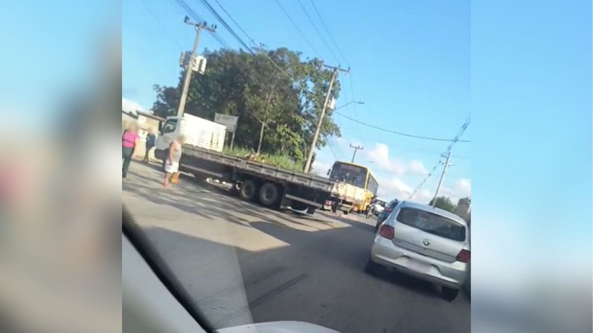 Segundo o caminhoneiro, ele seguia pela Rua Tuiui e sinalizou para entrar em uma fábrica da região. Um ônibus, que vinha no sentido contrário, parou para dar passagem.