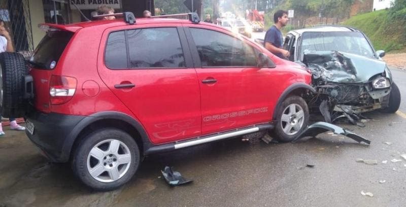 Um acidente envolvendo dois veículos foi registrado por volta das 15h30 do último sábado (31), no bairro Rio Molha, em Jaraguá do Sul. Segundo informações da Polícia Militar (PM), um Volkswagen Crossfox colidiu de frente com um Chevrolet Corsa.