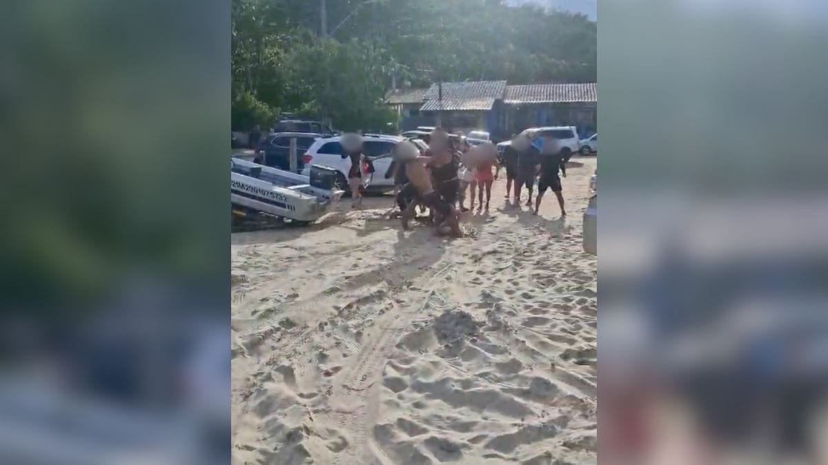 Imagens feitas por banhistas mostram o momento em que diversas pessoas estão envolvidas na confusão. Em determinado ponto, o homem entra no carro e dirige em direção aos banhistas, que estavam na areia. Depois, a mulher acaba atingida pelo veículo.