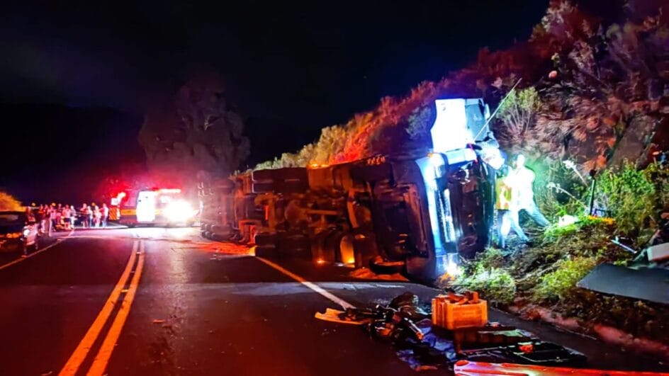 De acordo com a polícia, o motorista seguia sentido São Joaquim quando perdeu o controle do caminhão, saiu de pista e bateu em um barranco. Parte do veículo ficou na pista da rodovia, conhecida como Curva do Bibo.