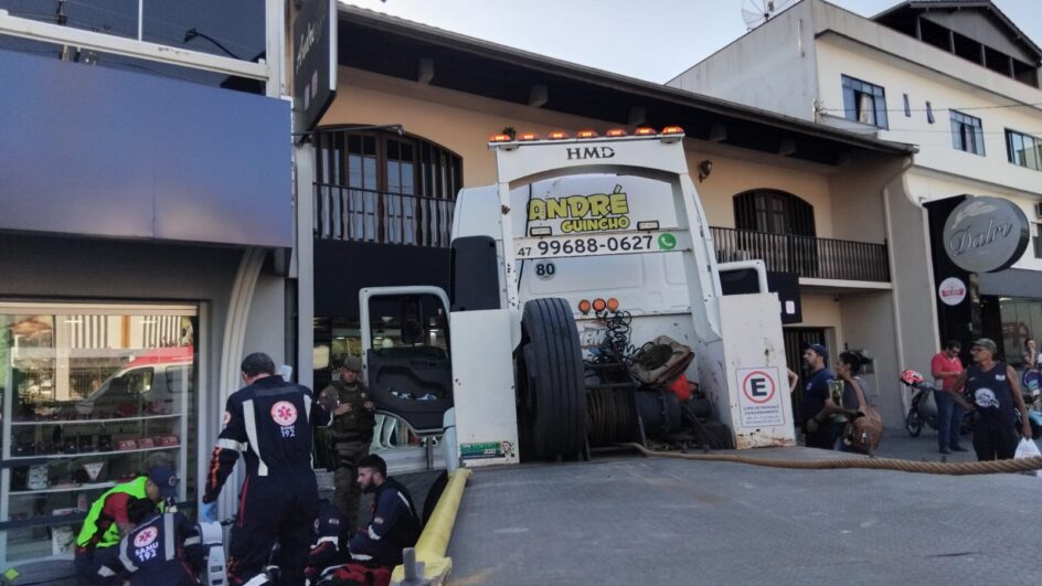 O motorista de um caminhão guincho sofreu um mal súbito ao volante na tarde desta quarta-feira (7) em Blumenau. Com isso, o homem de 45 anos acabou perdendo o controle do veículo e atingiu um ônibus do transporte coletivo. Ele chegou a ser socorrido pelo Samu, mas não sobreviveu.