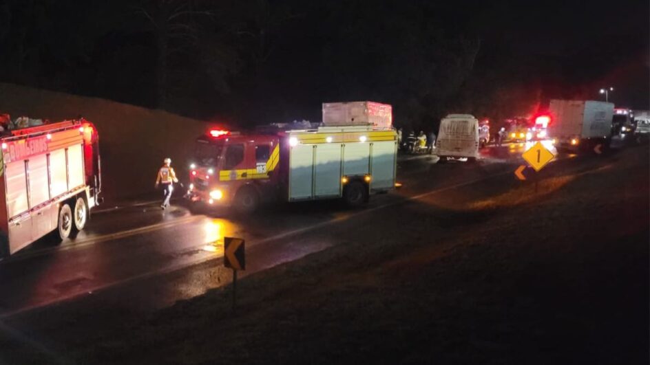 Um motorista ficou ferido após um engavetamento envolvendo dois caminhões e um micro-ônibus na BR-116, em Lages, no início da noite desta quinta-feira (17). O acidente ocorreu na região da área industrial da cidade.