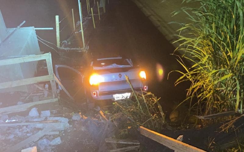 Um motorista saiu da pista na BR-101 e caiu no rio Itapocu após fugir da Polícia Rodoviária Federal (PRF) no último sábado (13) em Barra Velha, no Norte de Santa Catarina. Ele escapou em uma área de mata e ainda não foi localizado pela polícia.